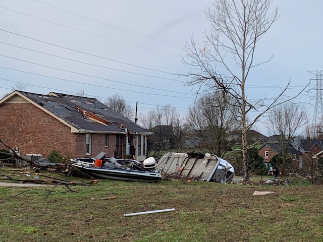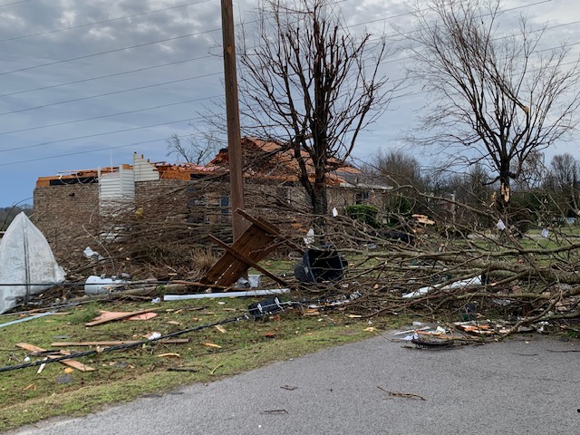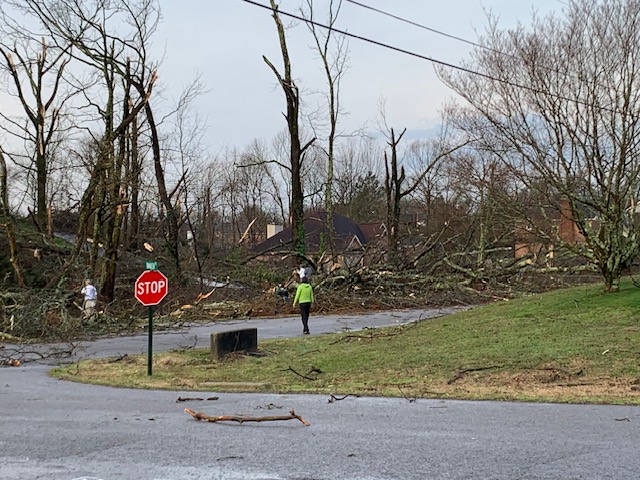 Our street and yards were covered with debris, but we had been spared from most of the destruction. The streets above the hill, however, had been in the direct path of the tornado. Houses were demolished or badly damaged. Power lines laid out on the roads.
