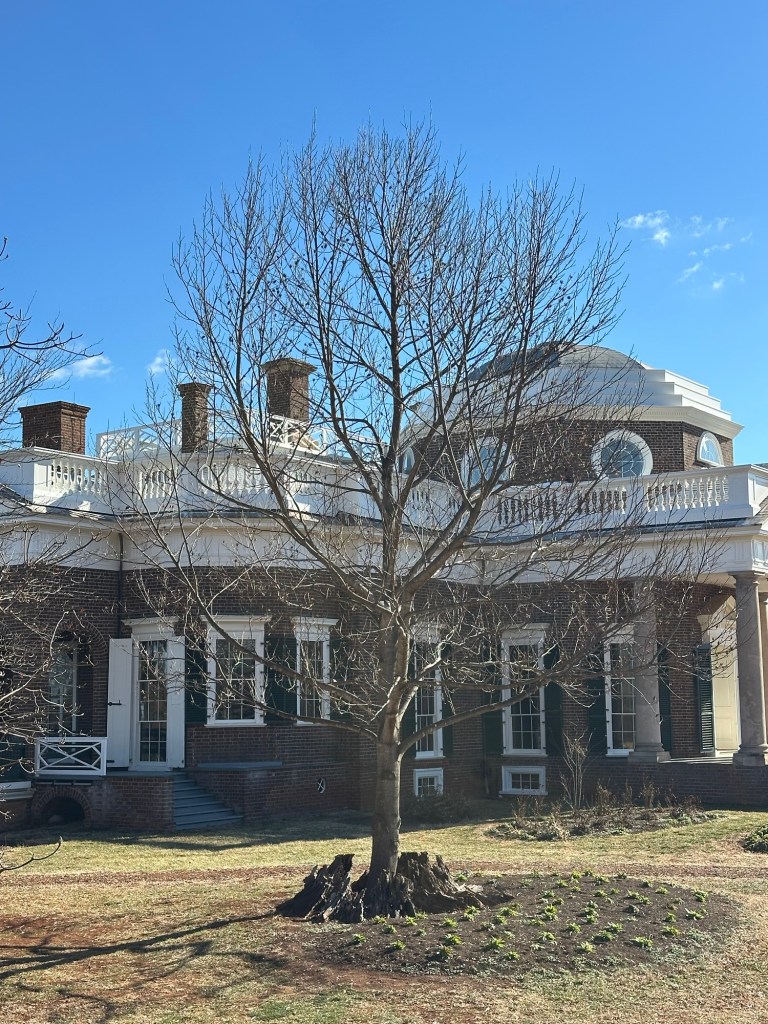 But one image stayed with me: a young tree growing from the hollowed shell of an old one, just outside Monticello. Years ago, the original tree had to be cut down to protect the building. Its stump was left behind, and in time, a seed found its way into the hollow. Now, a new tree rises from the remains of the old—life emerging from what was lost.